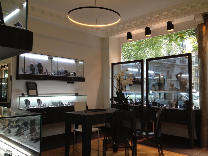 Nous avons créer le concept pour cette joallerie dans Paris, avec des lignes contemporaines et à la fois innovatrice. Nous avons récupérer les moulures ainsi que le parquet de Versaille existant.